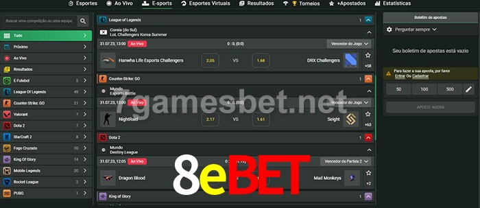 O 8ebet oferece uma grande seleção de opções de apostas em e-sports com probabilidades competitivas